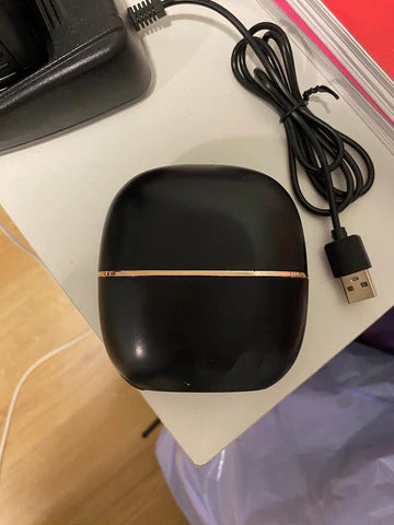 Yes! It comes with a USB charging cable, so you can charge it anywhere — no bulky cords needed.